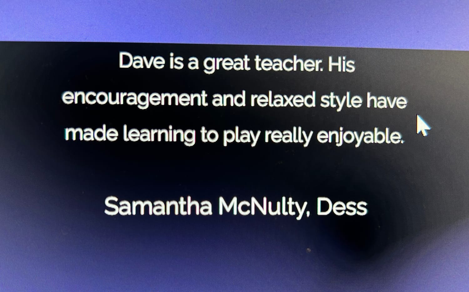 SCOTTISH BLUES GUITARIST DAVE INKSTER IS AN IN DEMAND EDUCATOR/COACH/SPECIALISING IN ELECTRIC BLUES GUITAR AND HIS INFLUENCES INCLUDE BB KING, PETER GREEN, ERIC CLAPTON AND ROBERT CRAY. ALTHOUGH HIS SHEDULE IS BUSY, HE ENJOYS HILLWALKING, MEDITATING, CINEMA, AND SUPPORTING HIS LOCAL FOOTBALL TEAM ABERDEEN FC!